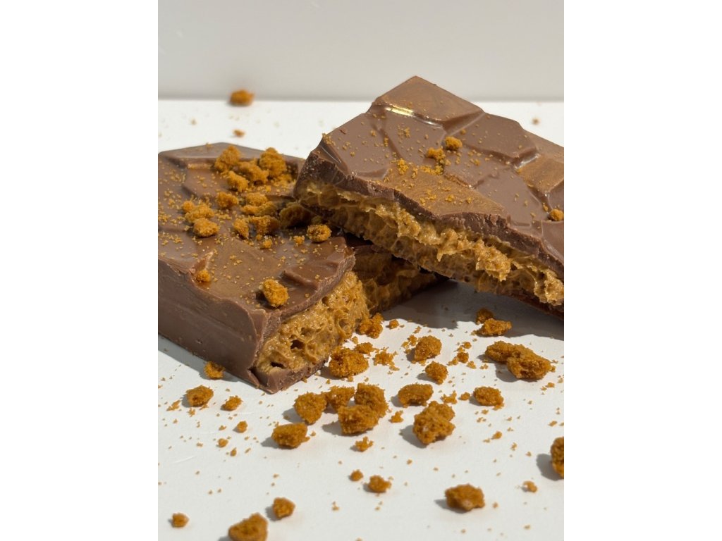Prémiová mléčná čokoláda s kousky křupavé sušenky a jemným sušenkovým krémem. Ručně vyráběná v Jindřichově Hradci z kvalitních surovin, s důrazem na poctivou chuť a řemeslné zpracování. Vyrobeno z prémiové francouzské čokolády od známého výrobce Michael Cluizel.
