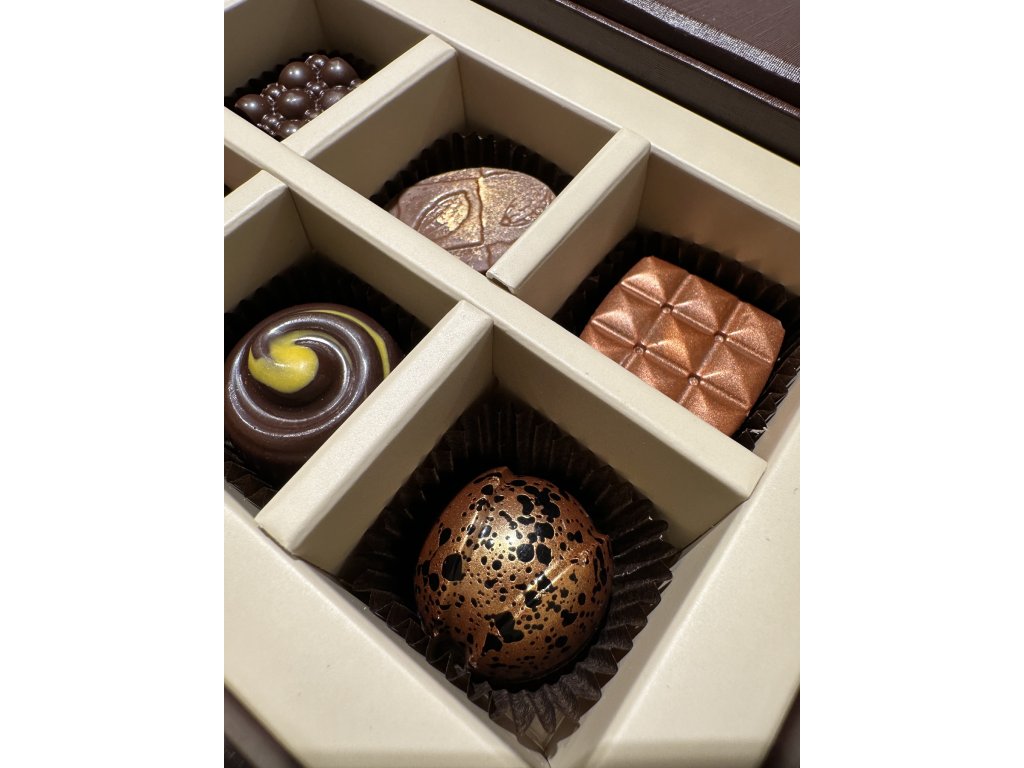 Ručně vyrobené čokoládové pralinky z mléčné a hořké čokolády, plněné různými náplněmi. Vyrobeno z prémiové francouzské čokolády od známého výrobce Michael Cluizel.